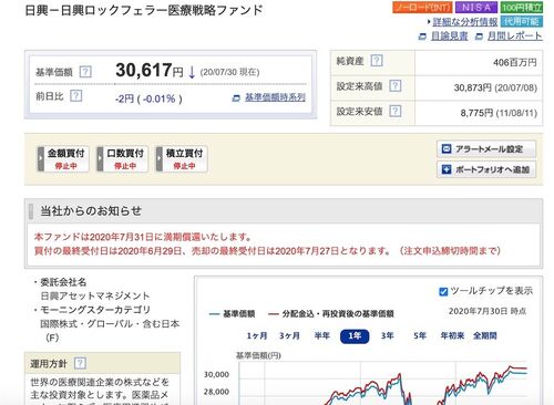 約7年間ほど積み立てしてきた投資信託 "日興ロックフェラー医療戦略ファンド" 今日が運用期間満了償還のその日でした。 投資信託の満期償還は初めて経験します。 要するにこの日をもって自動的に全部売却となり現金に変わるわけです。 医療戦略ファンドです…